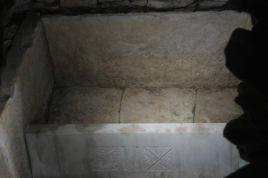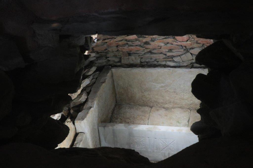 発掘調査で見つかった石室が公開されており、死者を埋葬する場所は