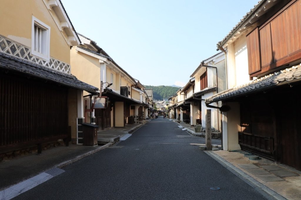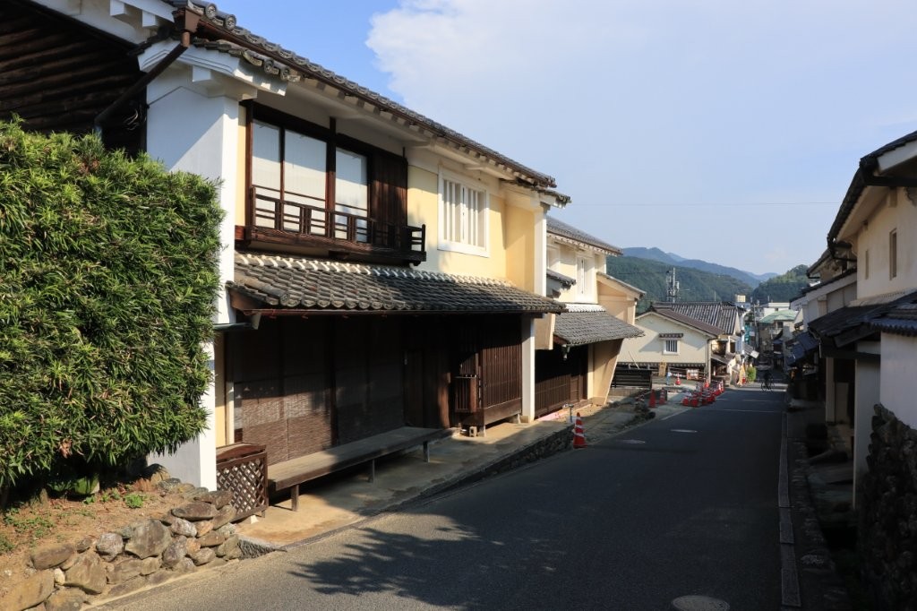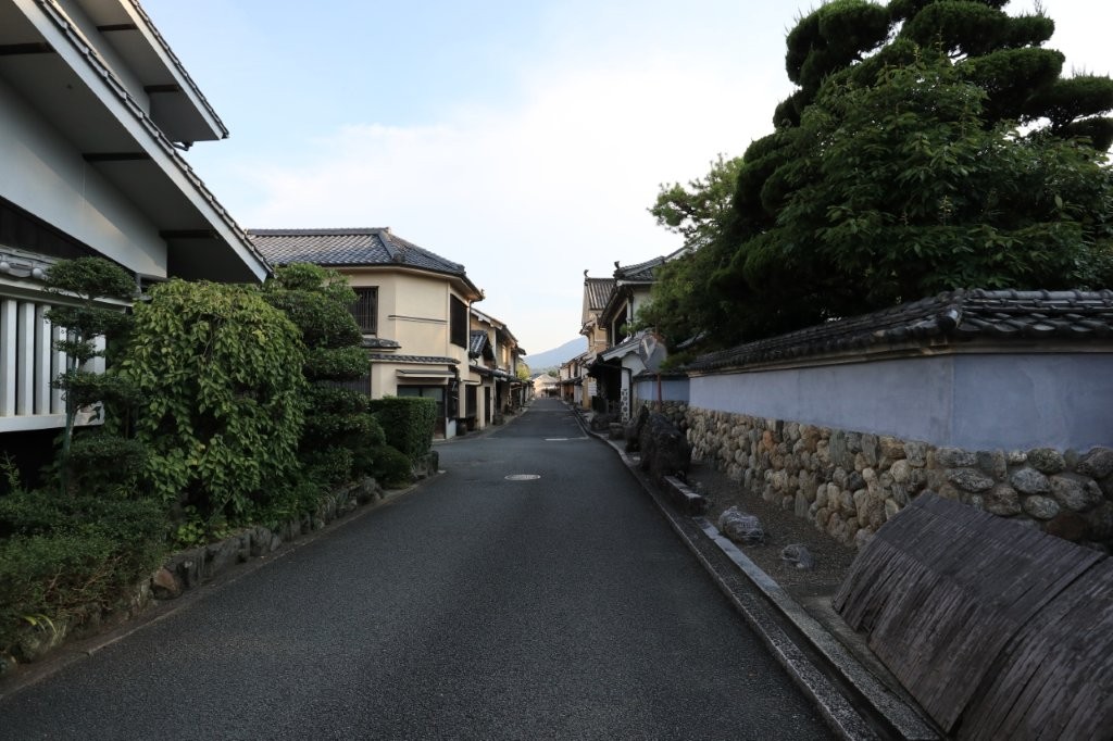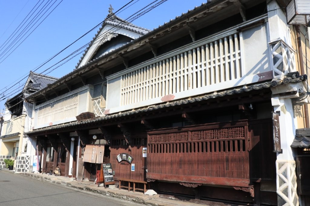 白壁の土蔵や格子戸の町家が約600メートルにわたり続き、往時の繁栄を偲ばせます。