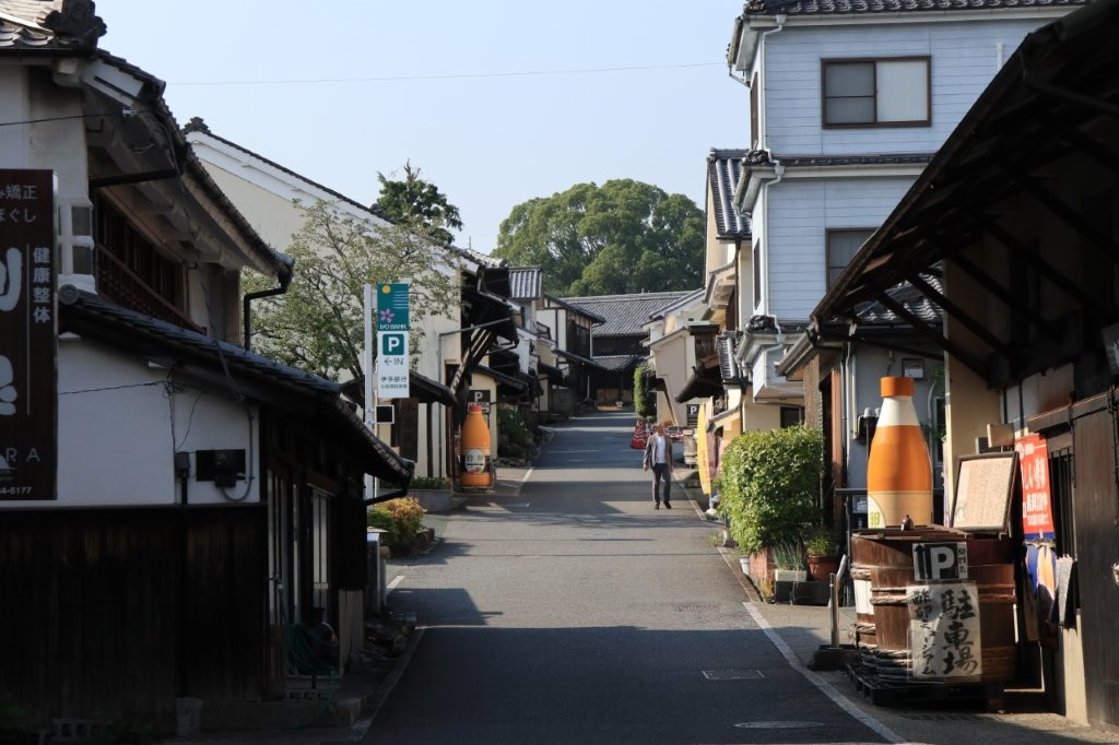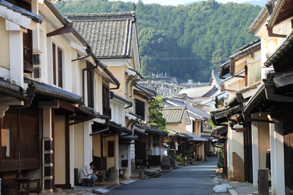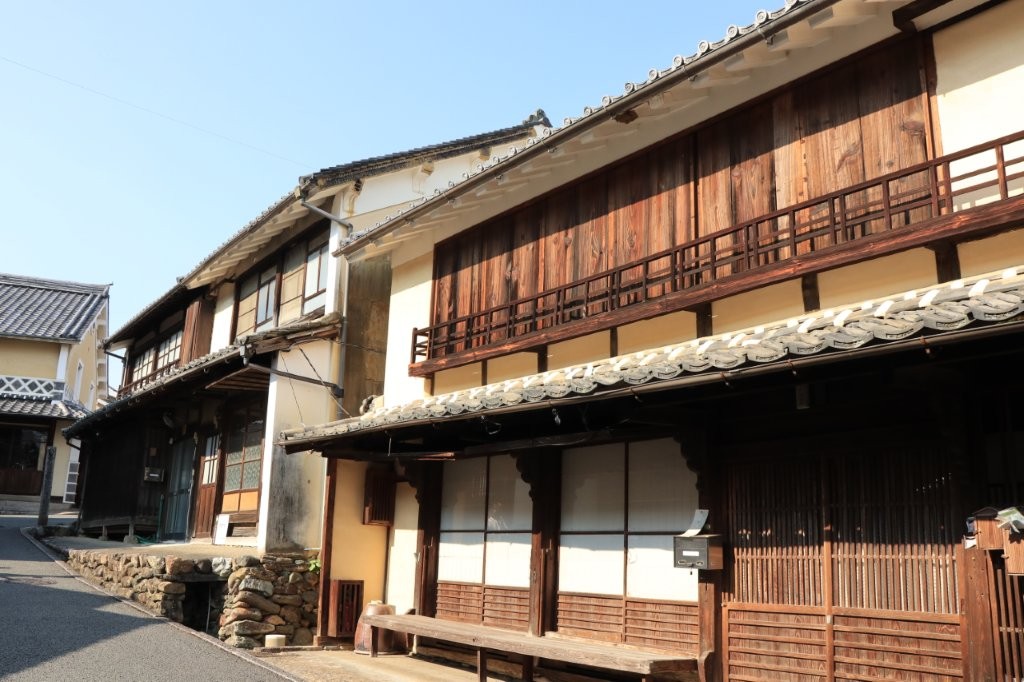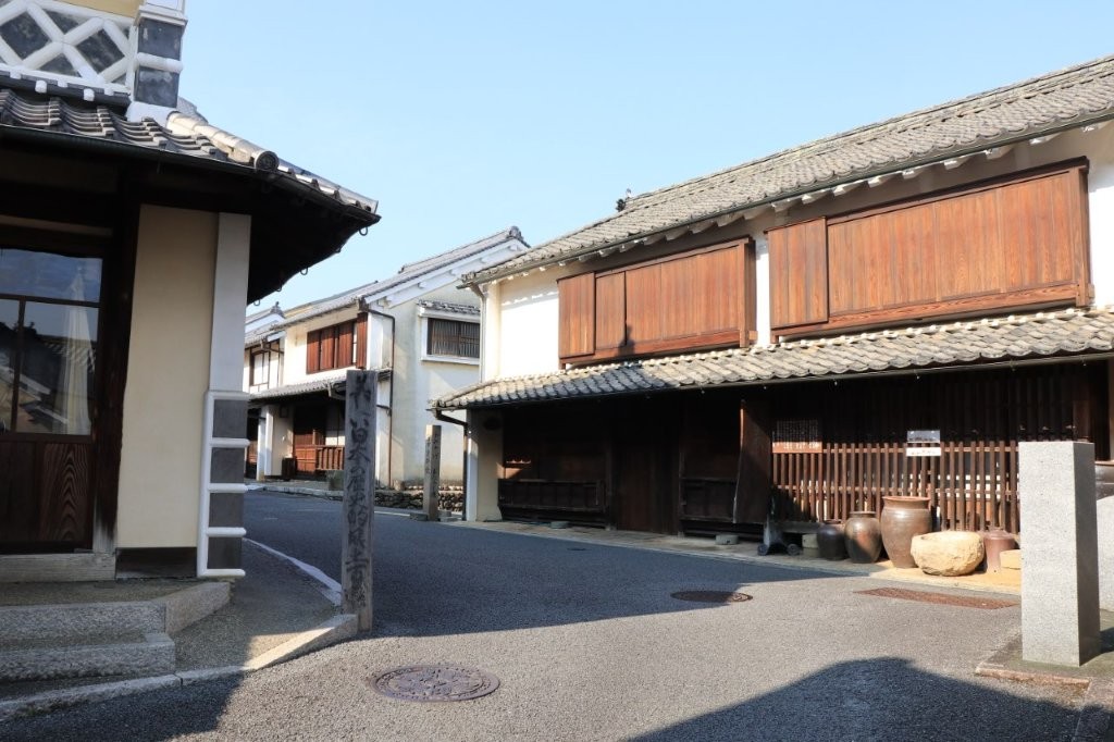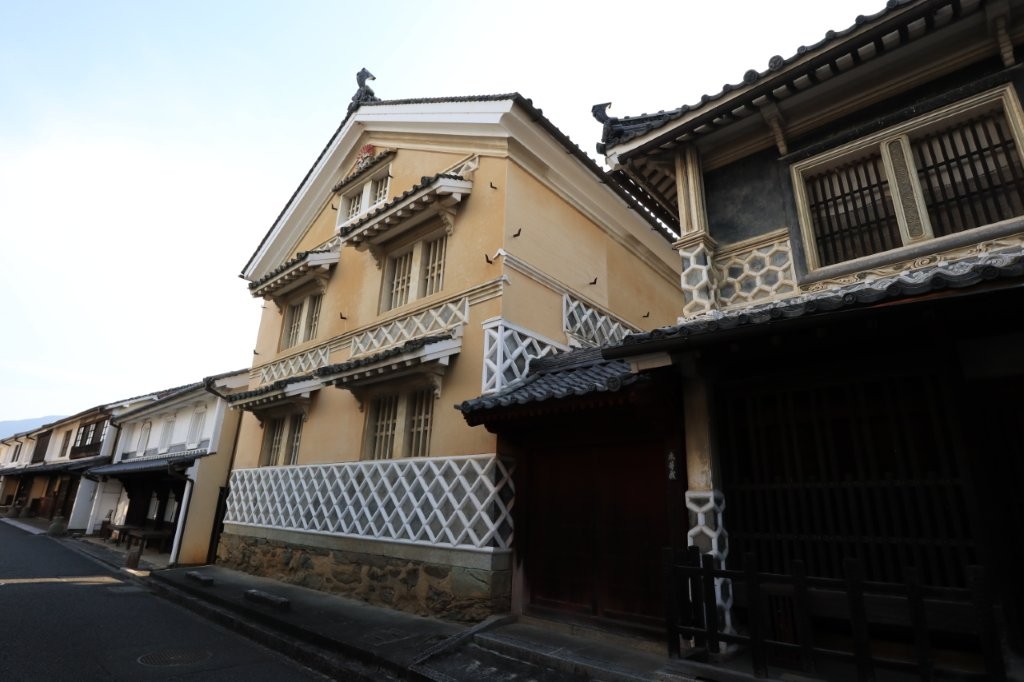 白壁の土蔵や格子戸の町家が約600メートルにわたり続き、往時の繁栄を偲ばせます。