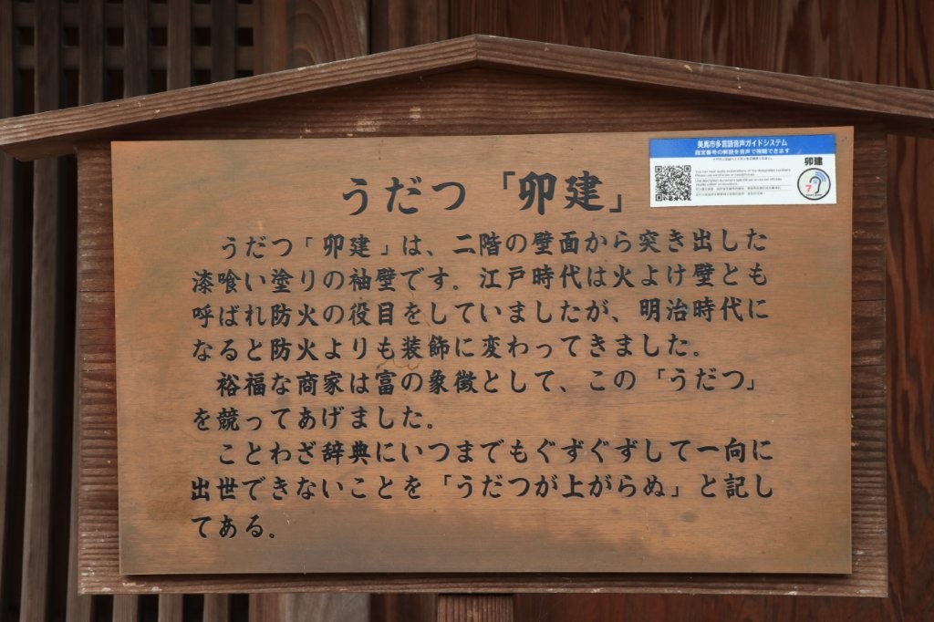 商家は重厚な佇まいで、隣家と接する壁には防火の為に卯建(うだつ)が設けられ