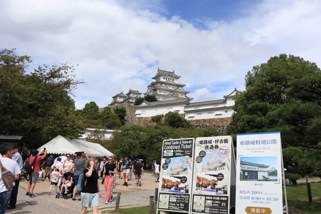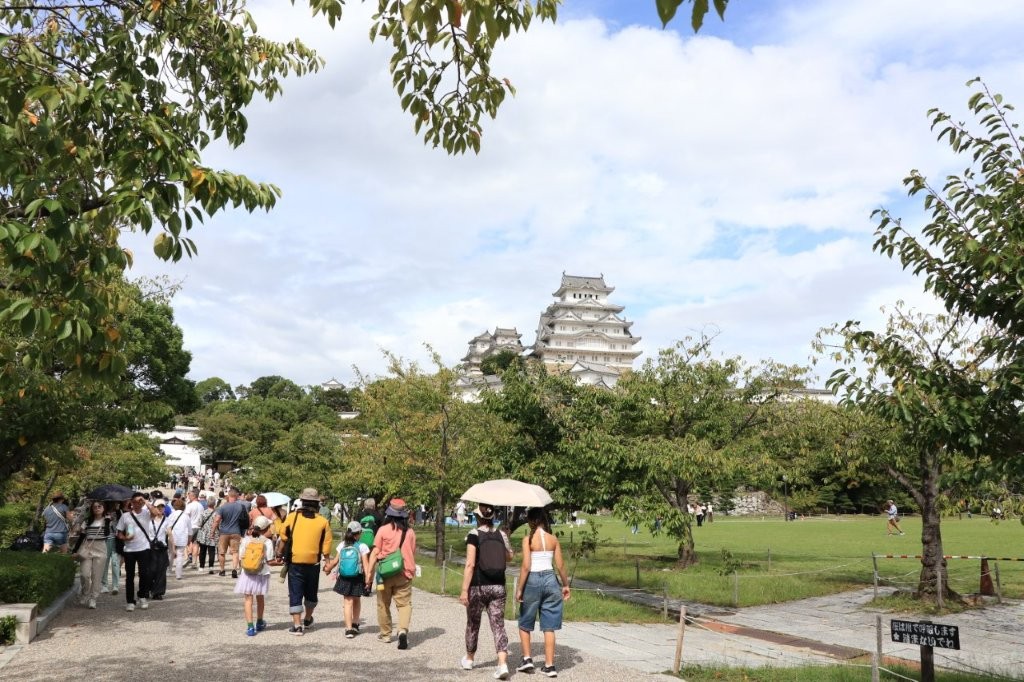 姫路駅を降りると正面にそびえる姫路城は、白漆喰の壁が美しく輝くことから